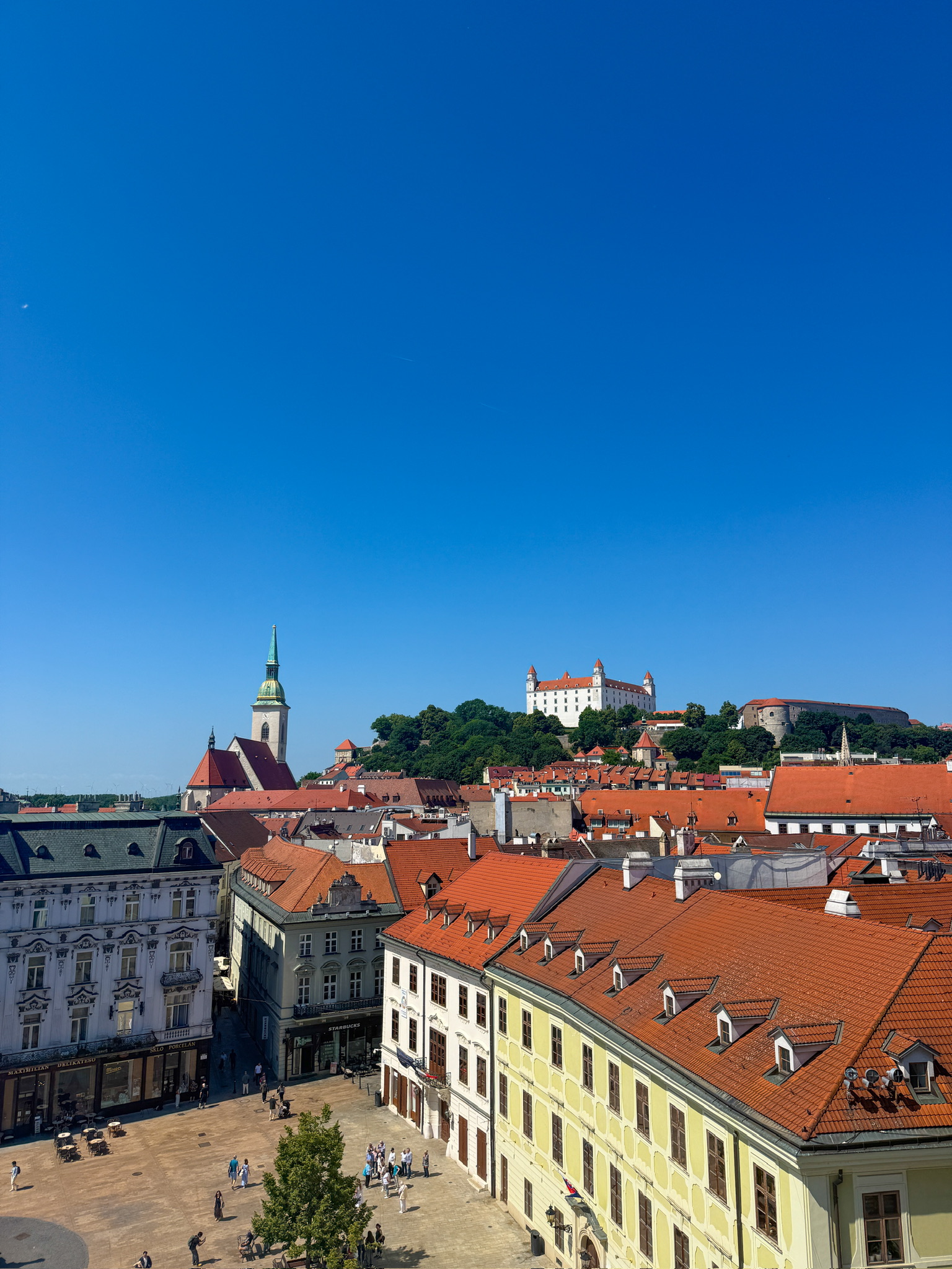 From the castle, we head down into the charming Old Town. The Old Town Hall not only offers one of the best views over Bratislava’s rooftops but also houses one of the oldest museums in Europe. You can easily spend 1–2 hours here.