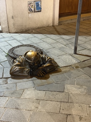 As you wander through the cobblestone streets, keep your eyes open: Bratislava is famous for its quirky statues hidden around every corner. A perfect little treasure hunt during your Bratislava walking tour.