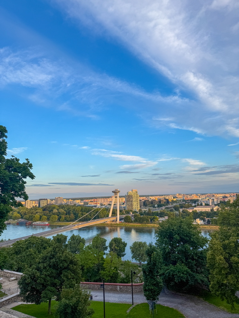 Cross the bridge and you’ll reach the futuristic UFO Tower. A lift takes you up to a 360° viewing platform with stunning views over the Danube and the city skyline. For photographers and sunset chasers, this is one of the absolute highlights in Bratislava.